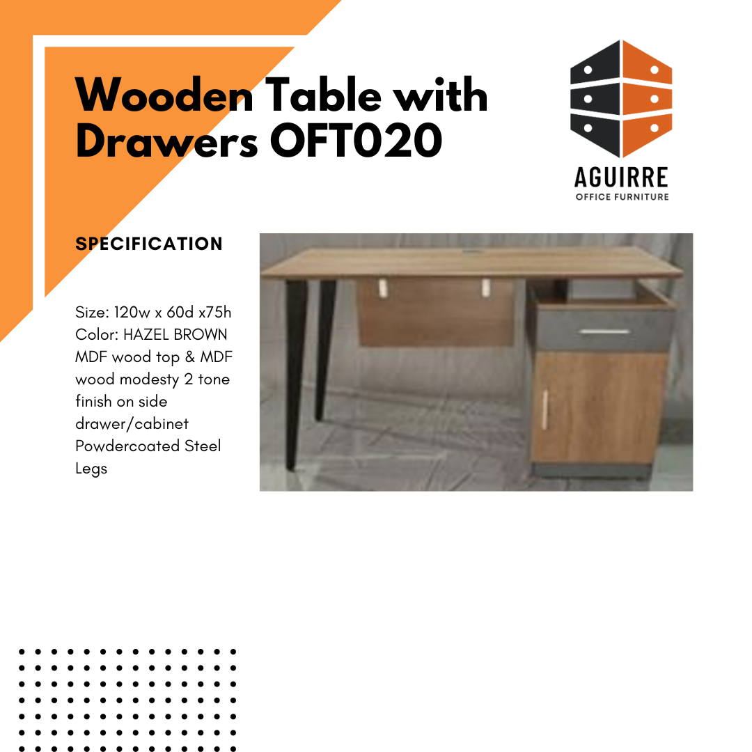 Size: 120w x 60d x75h Color: HAZEL BROWN MDF wood top & MDF wood modesty 2 tone finish on side drawer/cabinet Powder coated Steel Legs